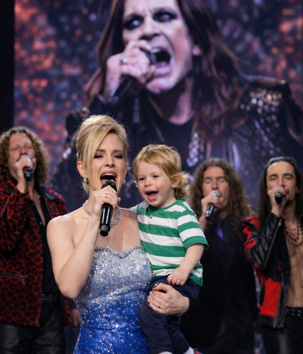 Yet when the moment arrived at the Grammy Awards, it unfolded with a gravity no announcement could have prepared the room for. Beneath towering visuals honoring Ozzy Osbourne, Kelly Osbourne stepped onto the stage. She did not arrive alone. She carried her young son, Sidney, into the light.
