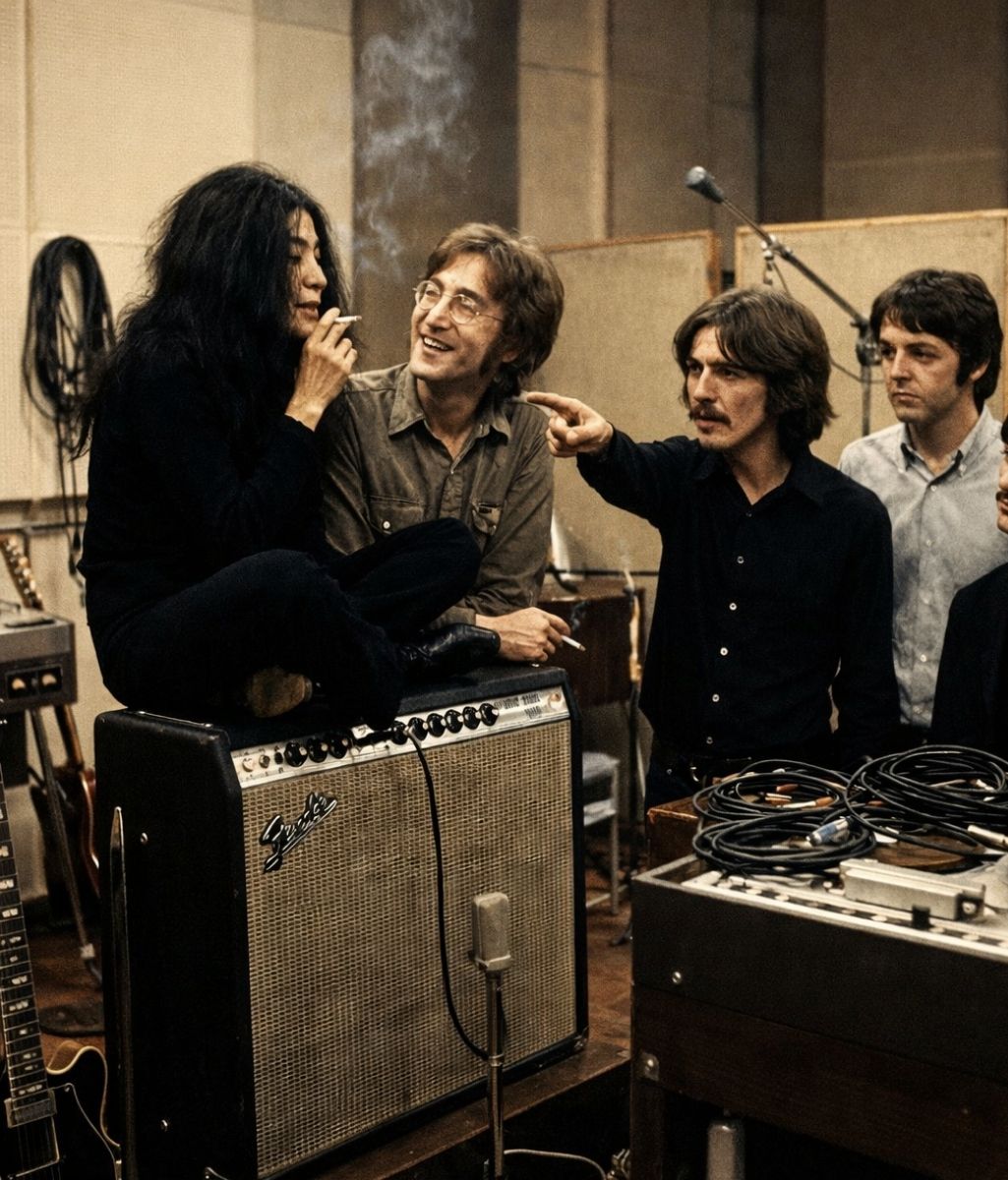 Yoko sat on John’s amplifier. Casually. Almost absentmindedly. To anyone outside the room, it might have meant nothing—just a seat in a crowded space. But inside Abbey Road, amplifiers were not furniture. They were tools, extensions of sound, part of the identity each musician carried into every session. In that small action, wood and wire became symbol.