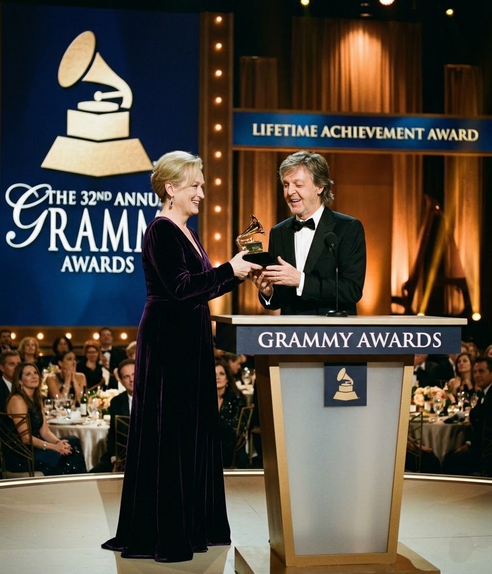 It was an evening filled with elegance, reverence, and deep emotion as one of music’s most enduring legends, Paul McCartney, stood under the spotlight to receive a Lifetime Achievement Award at the 32nd Annual Grammy Awards. The moment was made even more memorable by the presence of the distinguished actress Meryl Streep, who had the honor of presenting the award—bringing together two icons from different artistic worlds in a single, unforgettable tribute.