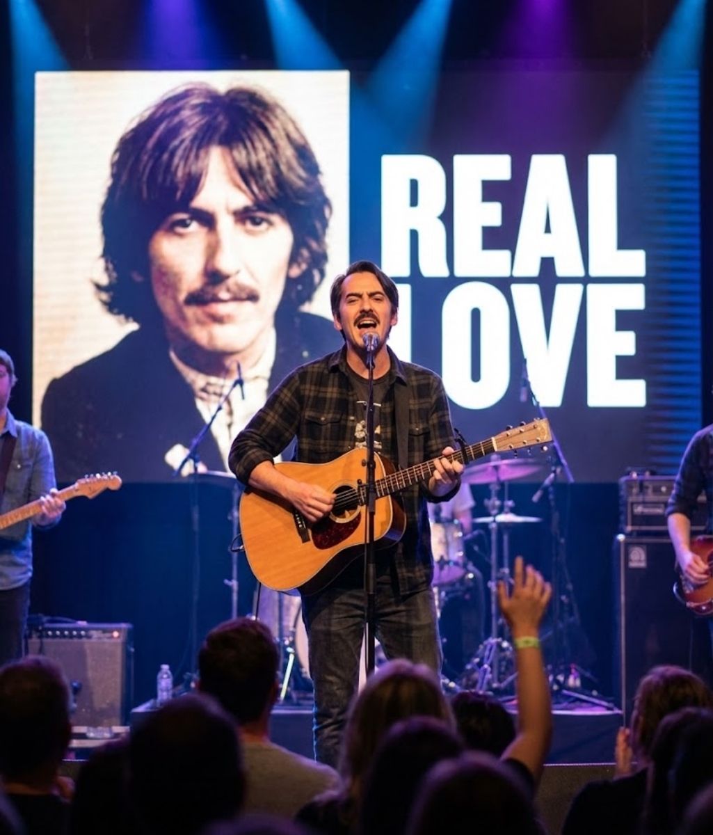 He did not rush. His hands were steady, his breath measured. Every movement acknowledged the weight of what he was about to release. The guitar was not a prop. It was a witness. And with it came the quiet presence of George Harrison, not as memory alone, but as intention finally fulfilled.