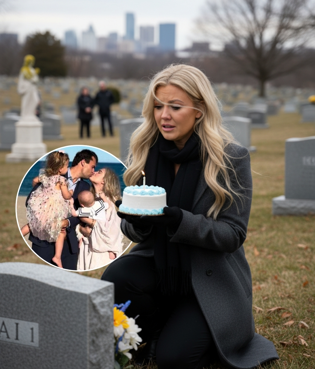 She didn’t arrive with cameras or speeches. Only quiet. Only love. Witnesses say the world seemed to hold its breath as she reached the headstone and knelt, her coat brushing the dew-soaked grass. Her shoulders shook, her breath unsteady, and for a moment, it felt as though time had stopped around her.