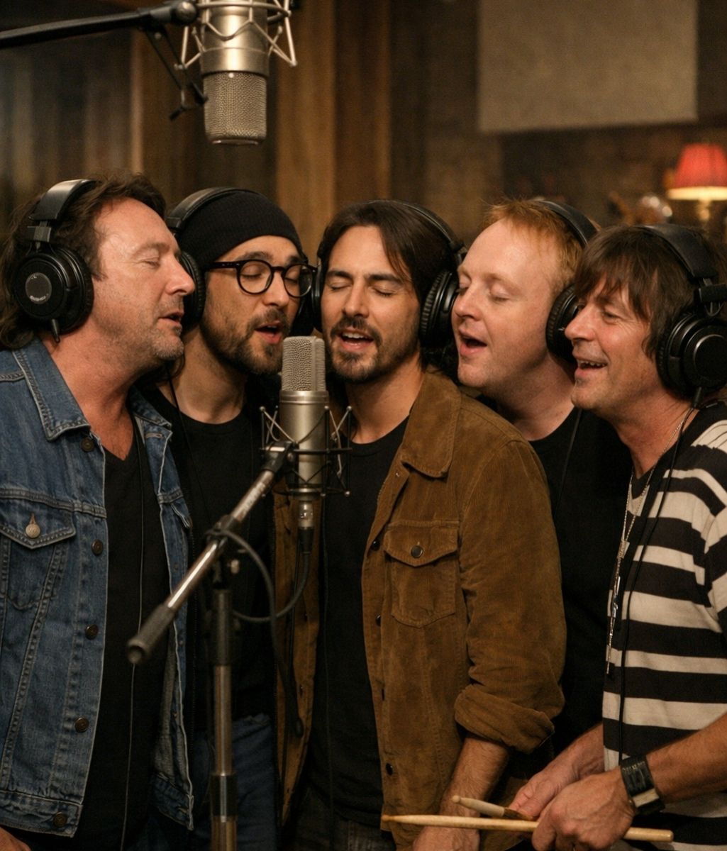Julian Lennon and Sean Ono Lennon stand side by side, their voices distinct yet unmistakably connected. There is familiarity in their phrasing, an emotional contour that listeners recognize before they can explain it. Dhani Harrisonlistens closely, then joins, his tone calm and grounded, carrying a reflective stillness that feels inherited rather than learned. James McCartney follows, adding warmth and lift, and Zak Starkey quietly counts the moment in, steady and assured.