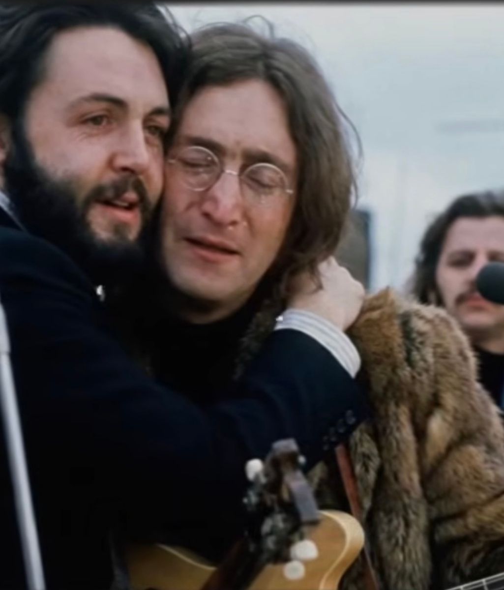 The clip opens on the familiar rooftop: grey sky, whipping wind, instruments trembling in the cold. But this time, the camera isn’t focused on the performance. It drifts to the side, where Paul and John stand shoulder to shoulder, waiting between takes. They laugh at something unheard. Their hair blows across their faces. For a few seconds, the world is small again — just two men who once believed they had all the time in the world.