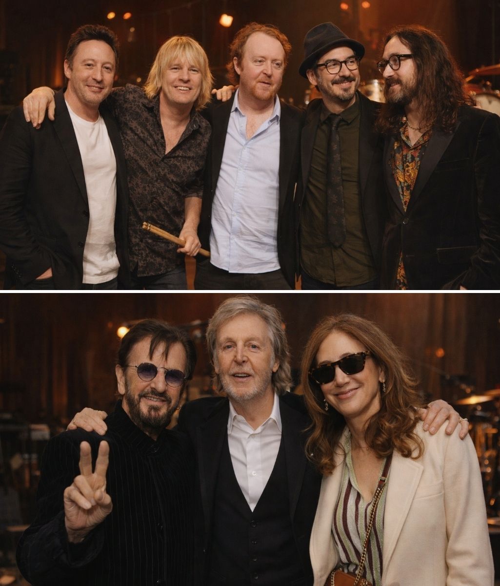 From the wings emerged Julian Lennon, Sean Ono Lennon, Dhani Harrison, Zak Starkey, and James McCartney. Five men bound not only by lineage, but by a shared inheritance of sound. Melody, rhythm, daring—all standing within reach of the last two original voices of The Beatles.