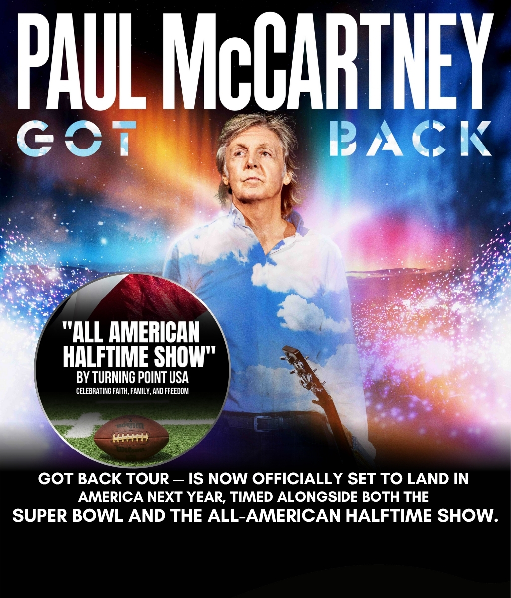 Paul McCartney’s Got Back Tour— once postponed amid political tension and cultural unrest — is officially returning to U.S. soil in the fall of 2025. Timed alongside both the Super Bowl and the newly announced All-American Halftime Show, McCartney’s return feels less like entertainment and more like medicine — a melody meant to soothe a divided world.