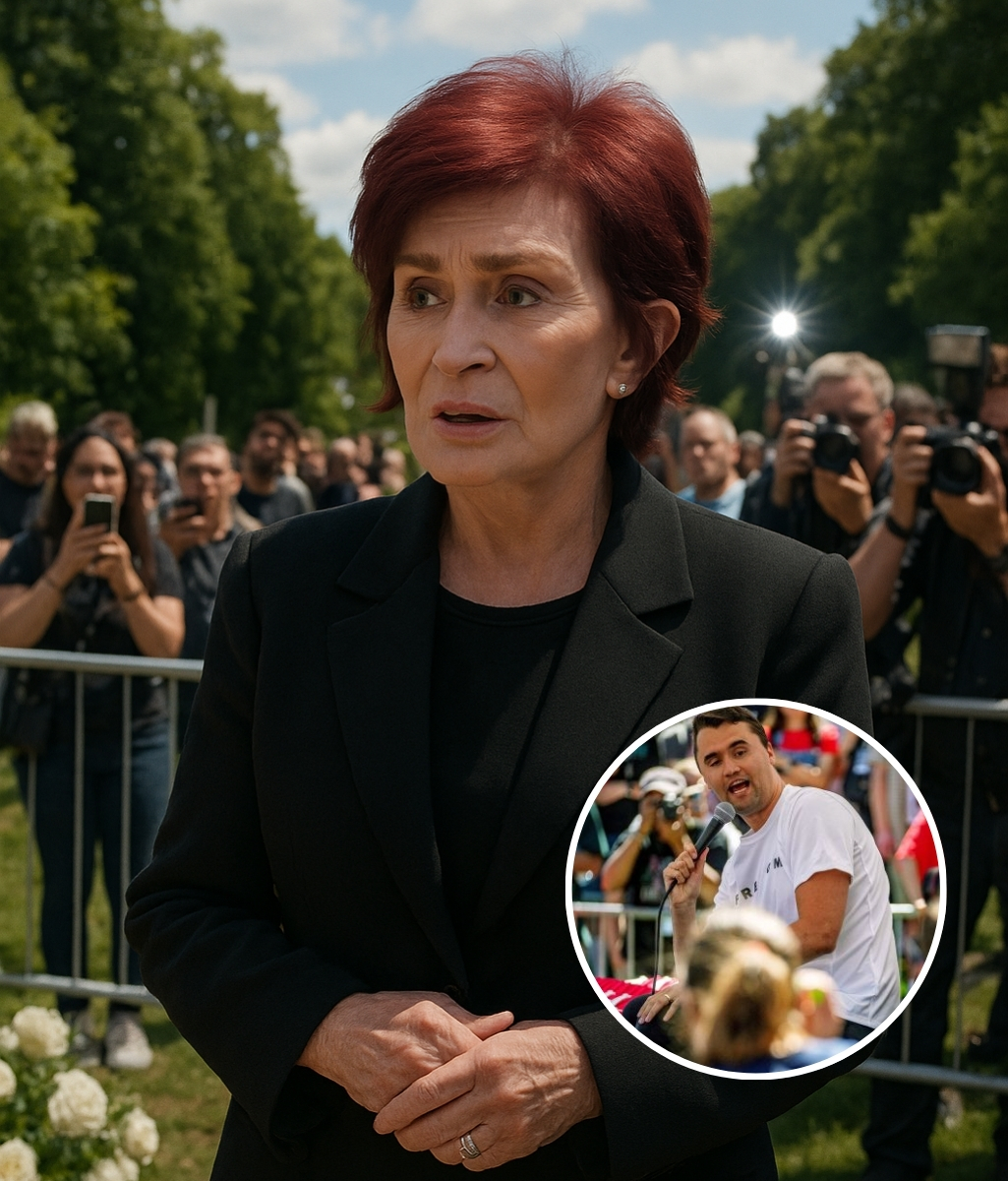 That silence was broken in the most unexpected of places: the funeral of Charlie Kirk. On a day already laden with grief, Sharon Osbourne stepped into the room and stunned everyone present. Dressed in unrelenting black, her eyes heavy with sorrow yet charged with an unmistakable resolve, she walked past the hushed mourners and approached the widow. What happened next silenced even the whispers of gossip.