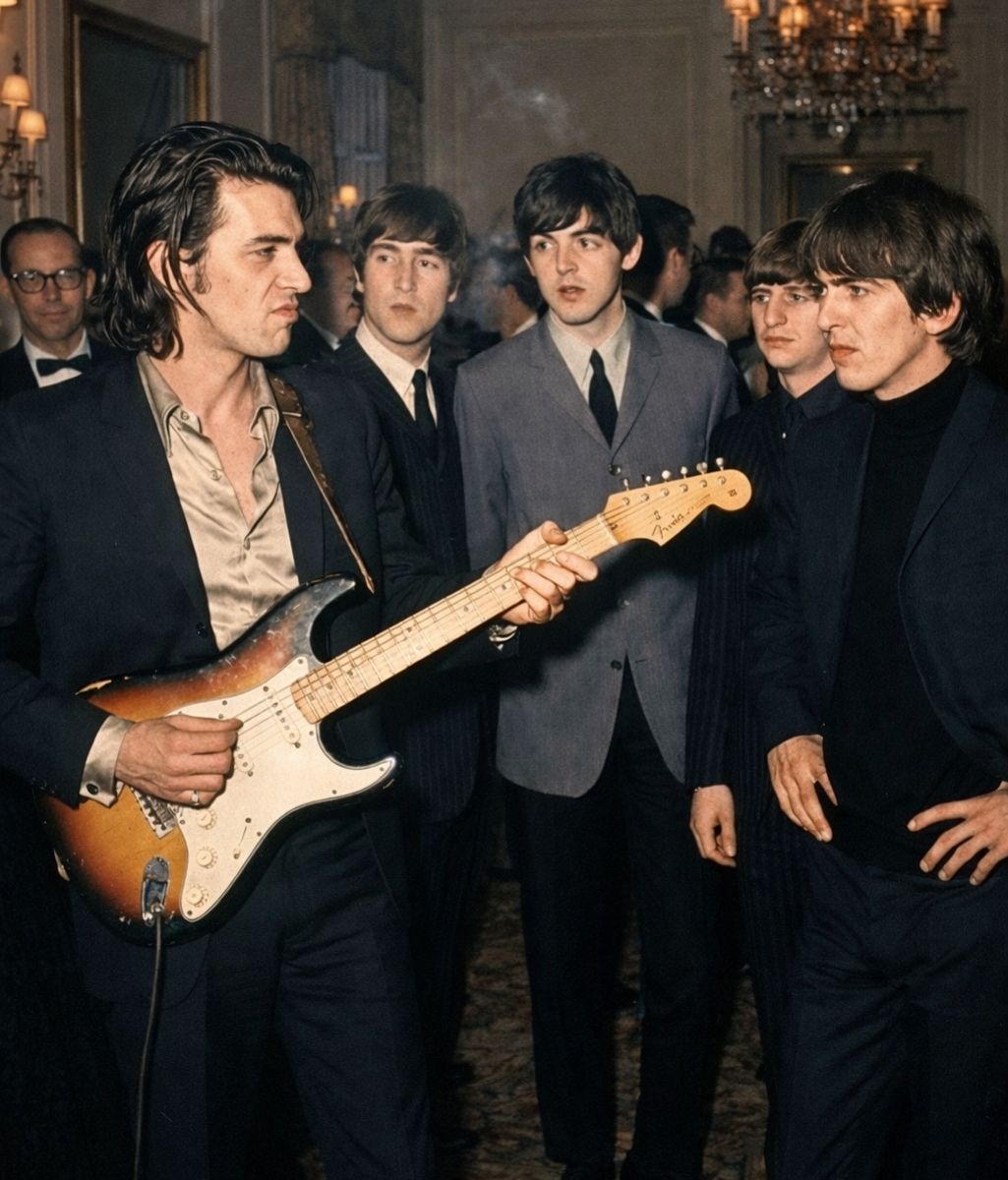 Conversations moved politely from table to table. Beneath the courtesy, however, lingered something sharper. A respected jazz guitarist—established, admired, secure in his reputation—looked across the room at George Harrison and asked, with a tone carefully disguised as curiosity, whether the young “pop star” even knew how to play.