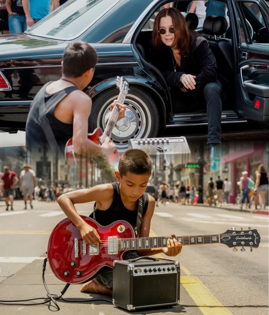 Across the street, a black Mercedes rolled slowly through traffic. Inside sat Ozzy Osbourne, sunglasses on, lost in thought. Then he heard it — the melody, his melody — not blasted from a speaker, but bleeding from a child’s hands. He turned toward the sound, the years collapsing in an instant.