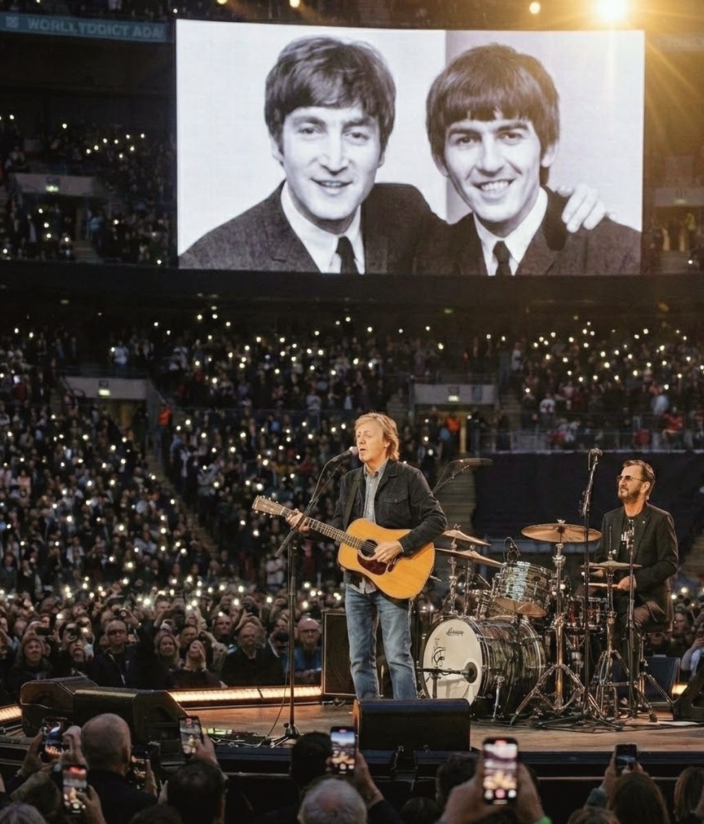 “In My Life” began without urgency. A song inseparable from John Lennon’s voice and shaped by George Harrison’s quiet musical restraint now rested in two remaining hands. The melody moved carefully, each note leaving space where others once stood. Absence was not hidden. It was honored.