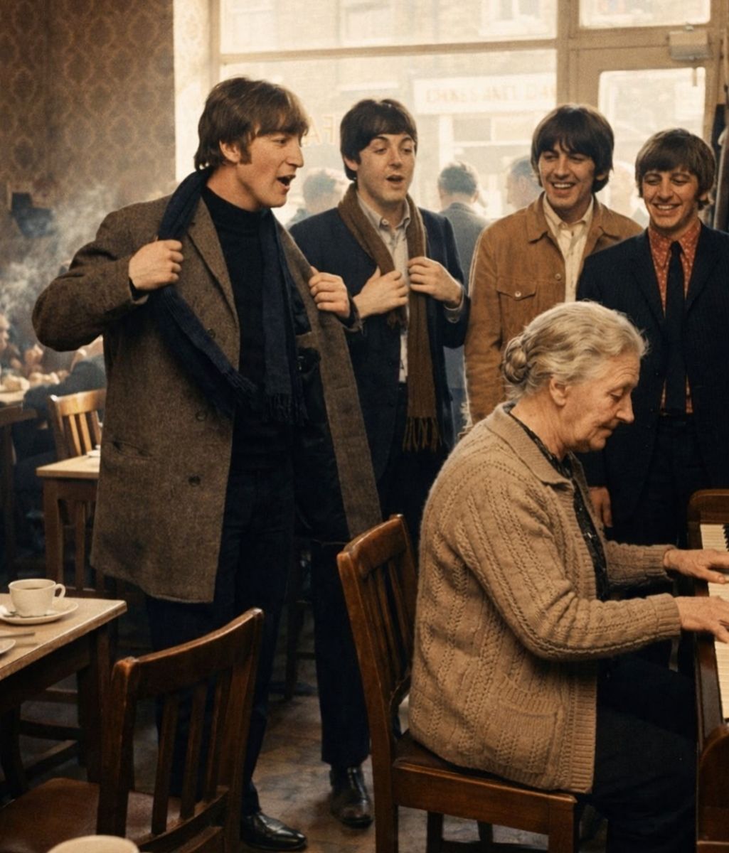 In the corner stood an upright piano, worn by years of passing hands. An elderly woman sat before it, her posture modest, her movements unhurried. When her fingers began to move, the melody was unmistakable. “Yesterday.” Gentle. Patient. Enduring.